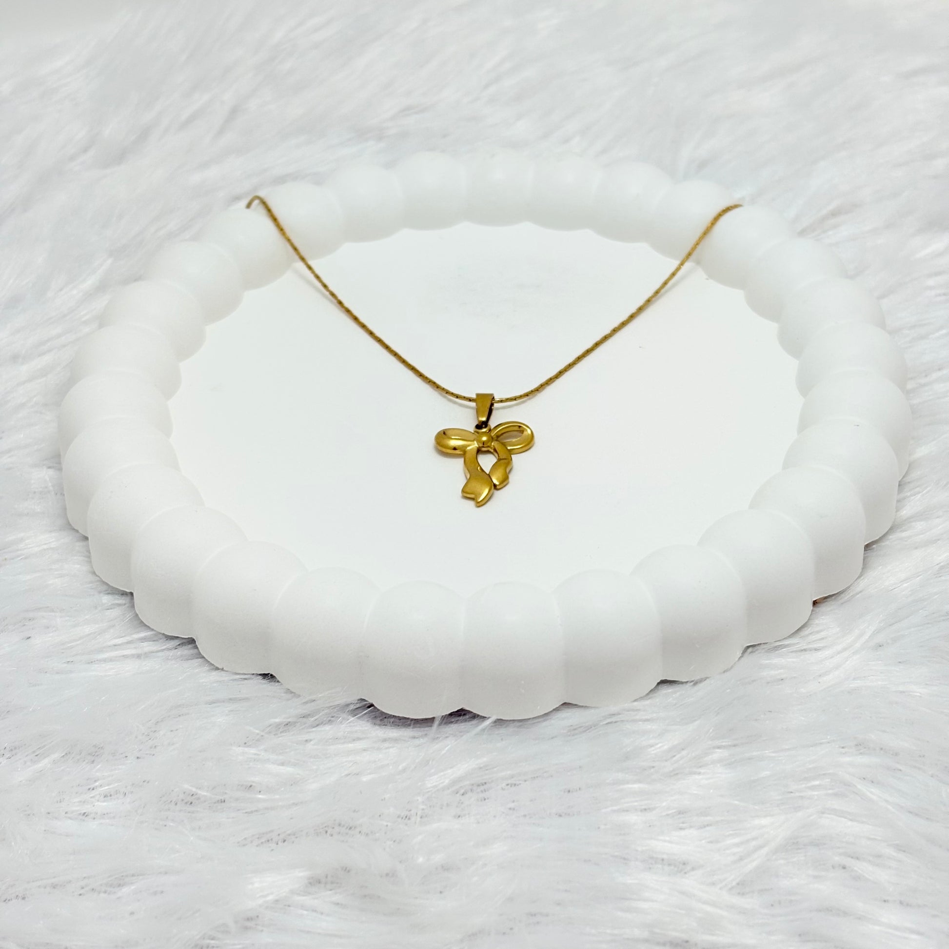 Whether you're dressing up for a night out or adding a touch of elegance to a casual outfit, the Charming Gold Bow Pendant Necklace is a timeless accessory that will elevate your style.