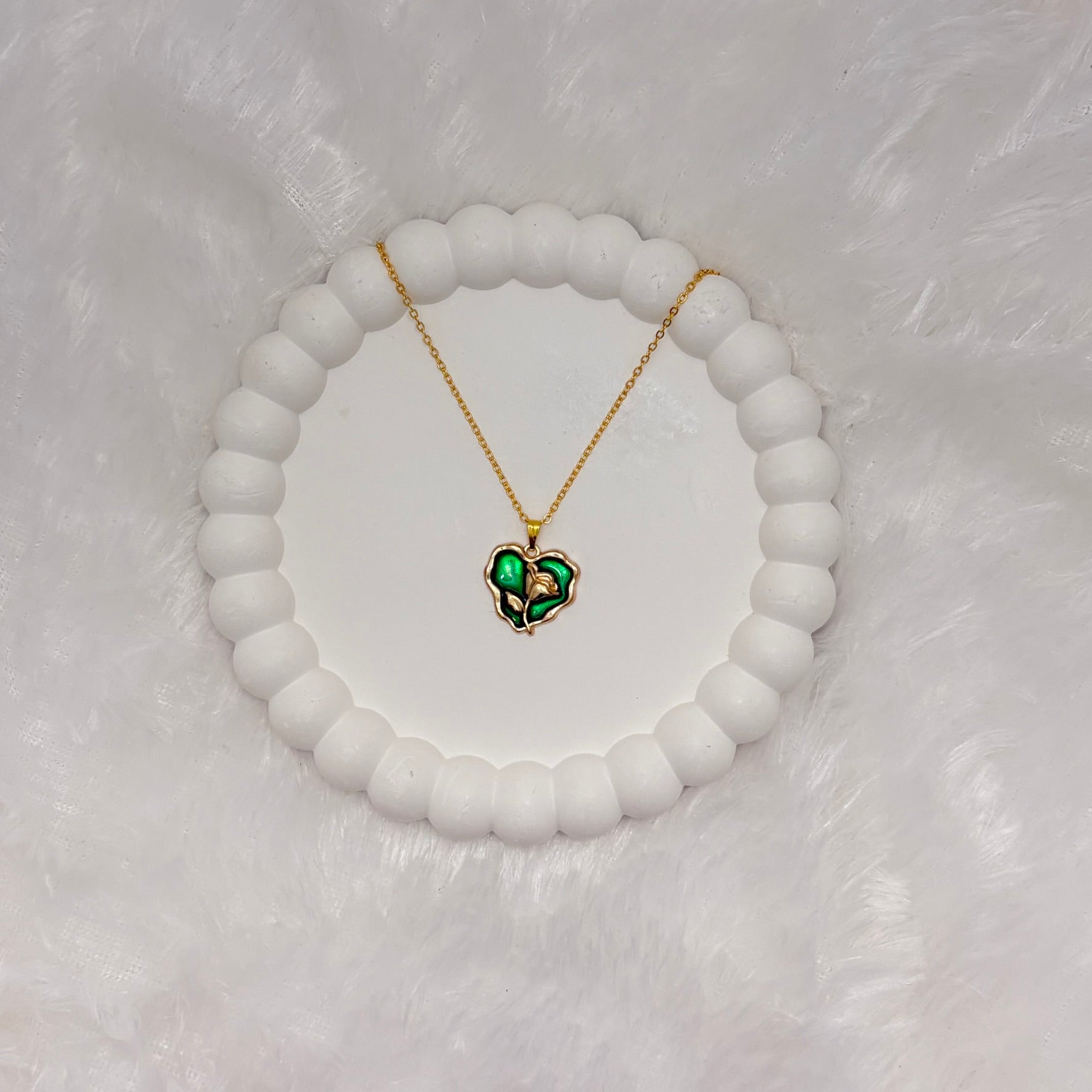 Whether you're dressing up for a night out or adding a touch of elegance to a casual outfit, the Enigmatic Green Enamel Rose Heart Necklace is a timeless accessory that will elevate your style.