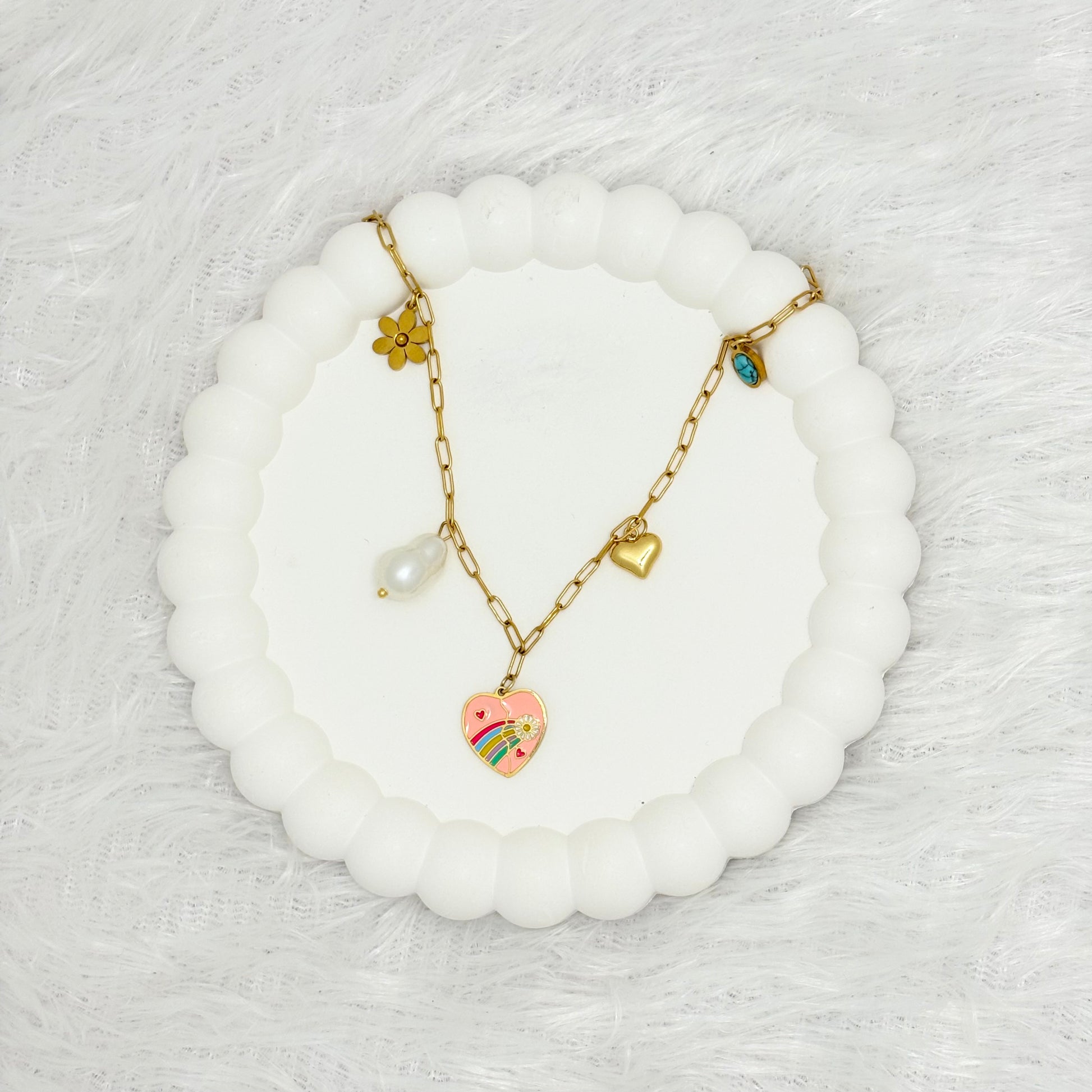 Whether you're dressing up for a night out or adding a touch of elegance to a casual outfit, the Playful Multi-Charm Necklace is a timeless accessory that will elevate your style.