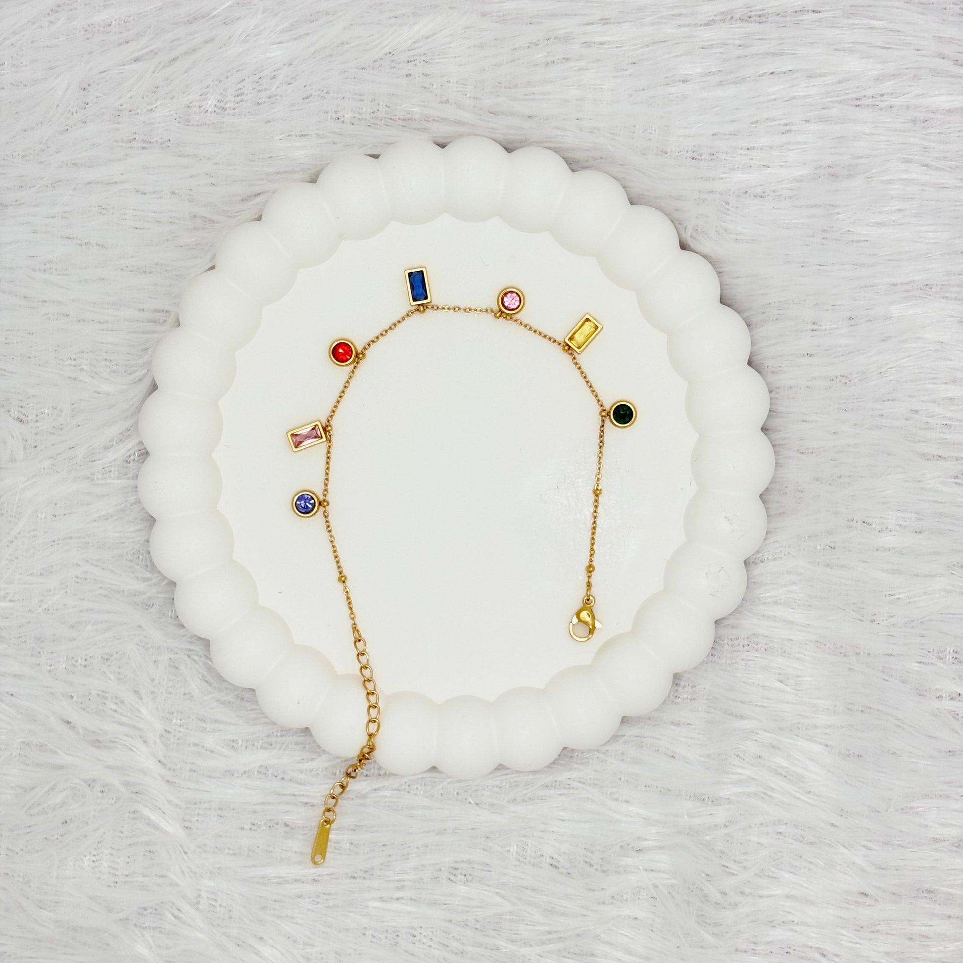 Whether you're dressing up for a night out or adding a touch of elegance to a casual outfit, the Vibrant Multi-Color Gemstone Charm Bracelet is a timeless accessory that will elevate your style.