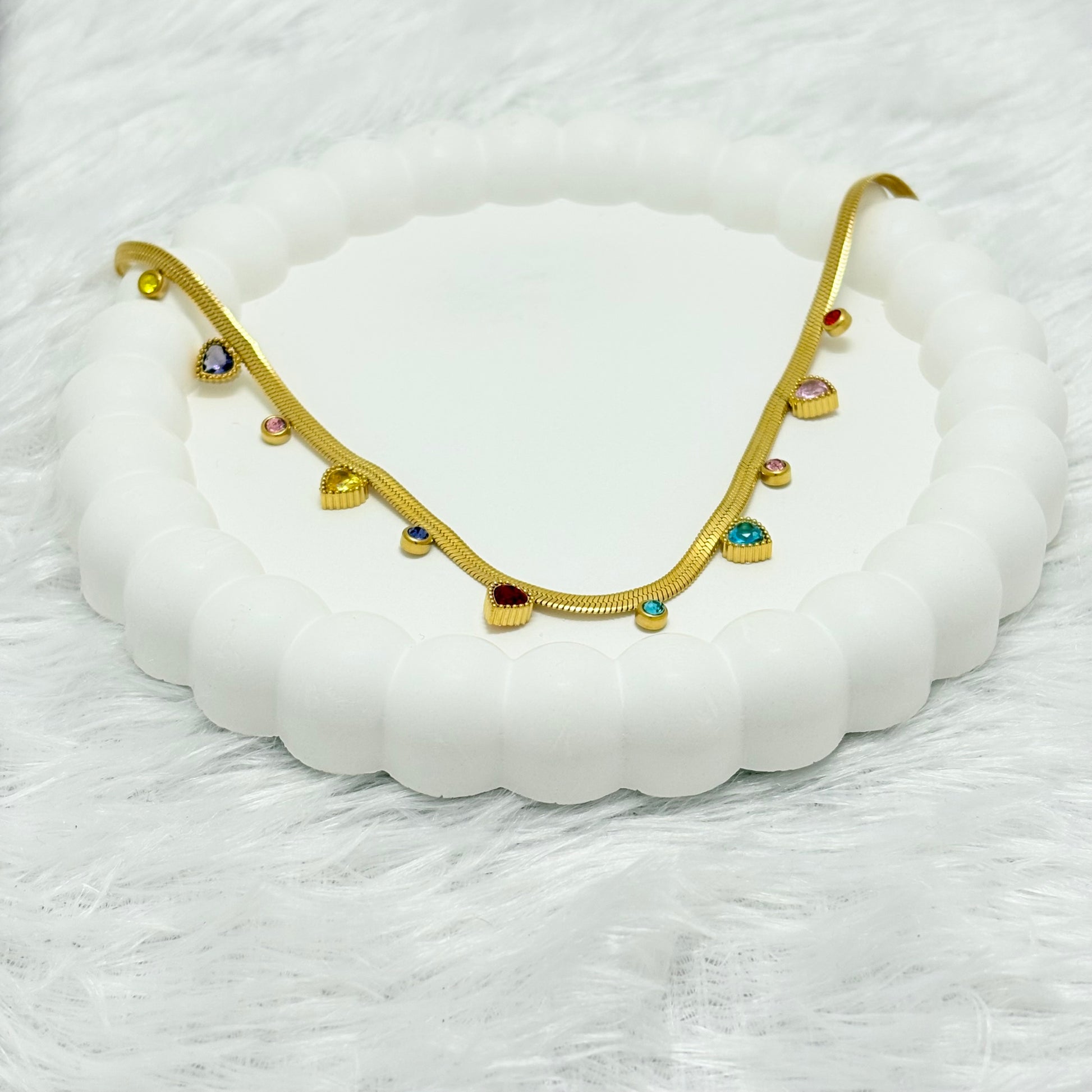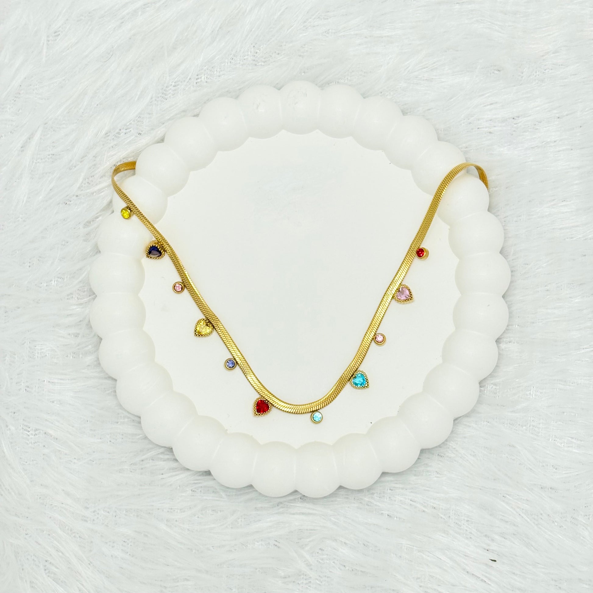 Whether you're dressing up for a night out or adding a touch of elegance to a casual outfit, the Vibrant Multi-Color Heart Charm Necklace is a timeless accessory that will elevate your style.